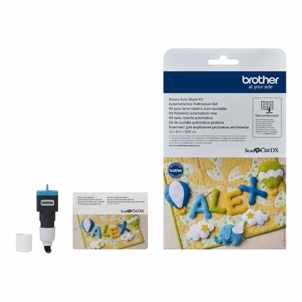 Kit pour lame rotative auto-ajustable ScanNCut Brother à utiliser avec la machine ScanNCut DX comprenant une lame et une carte d’activation pour accéder à 63 motifs